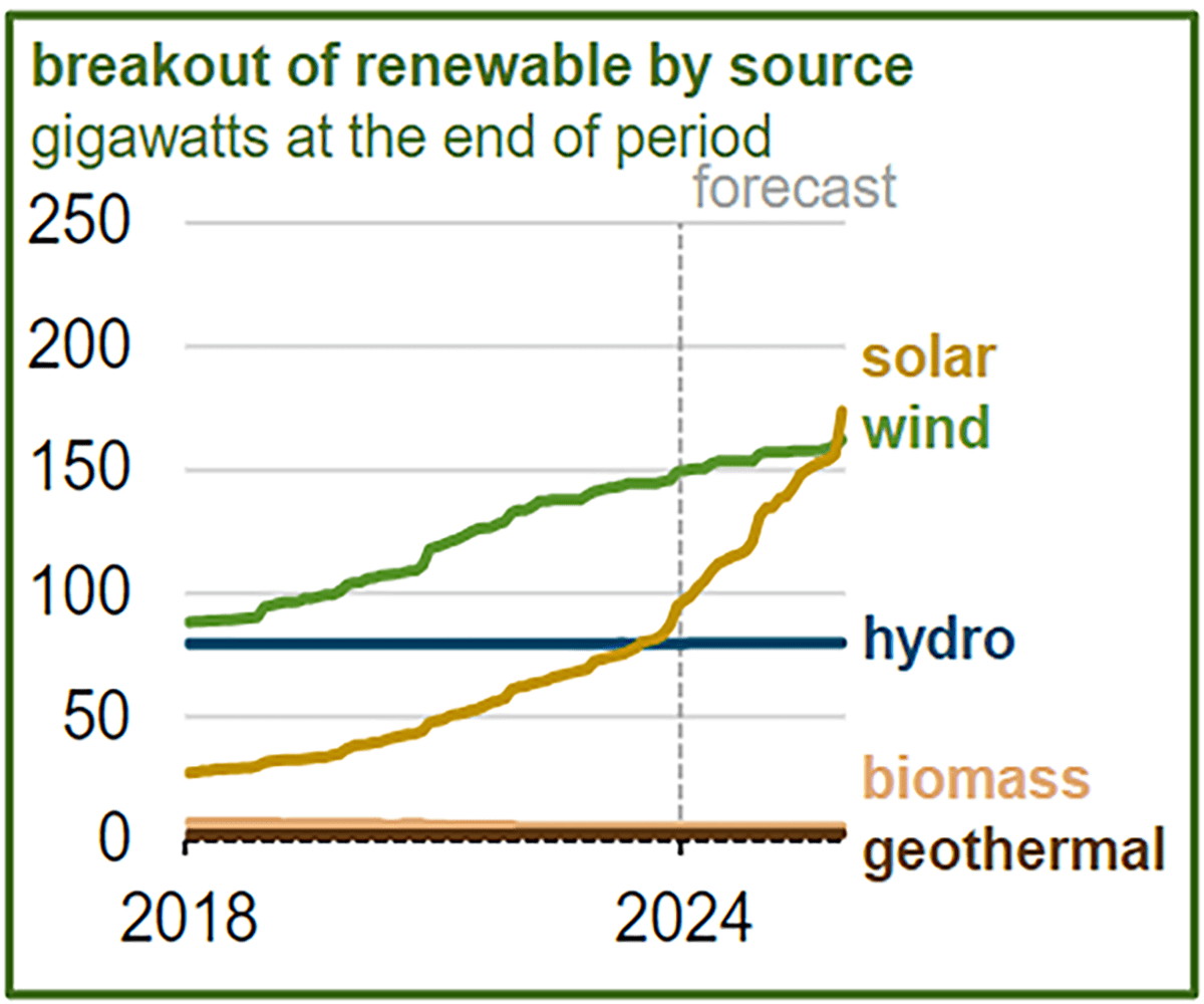 The Energy Information Administration expects solar generation to grow from 163 billion kWh in 2023 to 286 billion kWh in 2025.